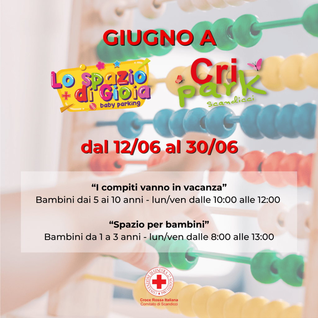 Durante il mese di giugno, presso il nostro Spazio di Gioia e Cri Park, organizzeremo due tipi di attività dedicate ai bambini da 1 a 3 anni e dai 5 ai 10 anni.