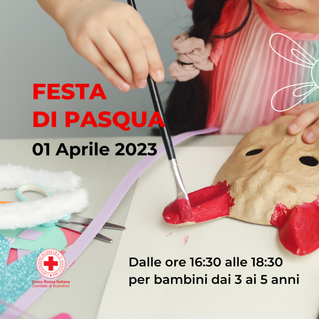 Solo per i soci di Croce Rossa il 01 Aprile organizzeremo una festa di Pasqua, dalle ore 16.30 alle ore 18.30 dove i bambini dai 3 ai 5 anni potranno partecipare alle seguenti attività: